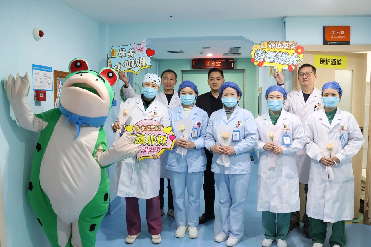 3月8日上午,院长禹爽亲自带队,深入到每一个临床、医技以及职能科室,向女性职工们送上鲜花和温馨的祝福。更有趣味盎然的“青蛙人”角色,由工作人员扮演,为大家带来惊喜与笑容,寓意着生命的活力和春天的希望。