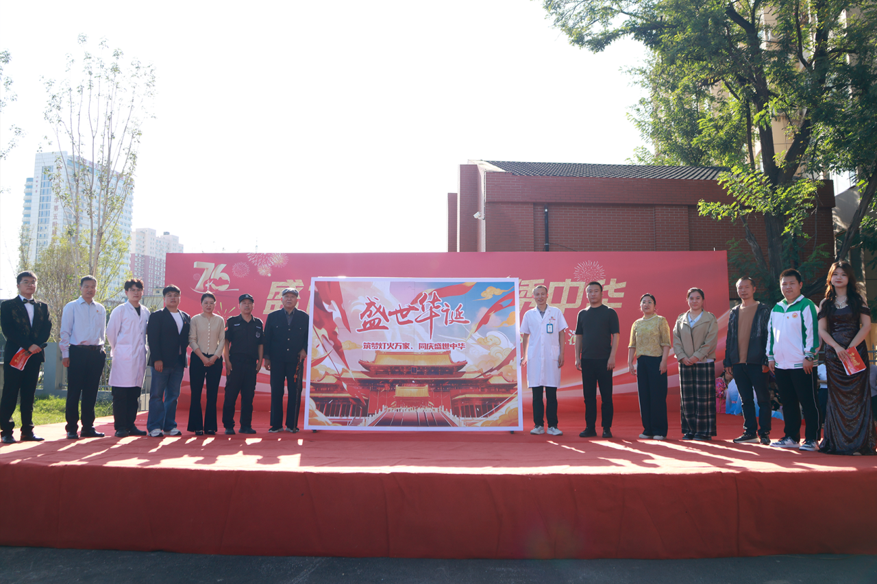 “盛世华诞图”,寓意团结与祝福,寄托着对祖国母亲繁荣昌盛的美好愿望。这一幕不仅展现了社区与共建单位的携手同行,也折射出